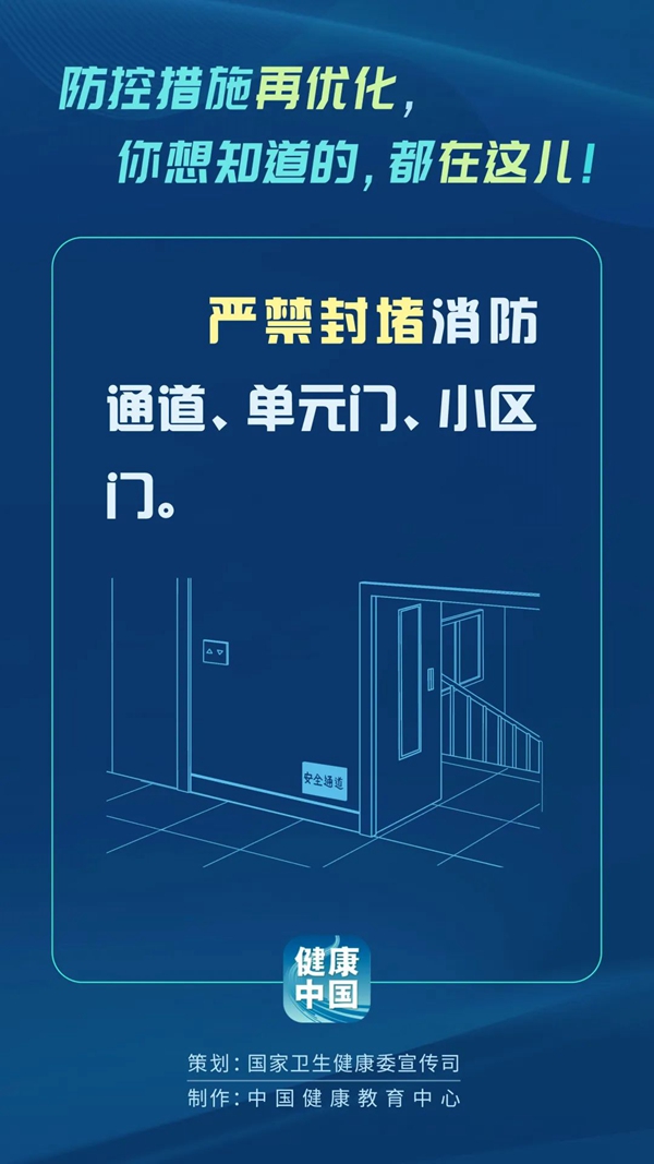 九是、强化涉疫安全保障。严禁以各种方式封堵消防通道、单元门、小区门,确保群众看病就医、紧急避险等外出渠道通畅。推动建立社区与专门医疗机构的对接机制,为独居老人、未成年人、孕产妇、残疾人、慢性病患者等提供就医便利。强化对封控人员、患者和一线工作人员等的关心关爱和心理疏导。