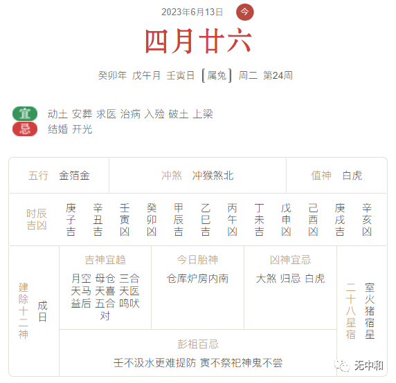 2023年6月13日 星期二 农历四月廿六