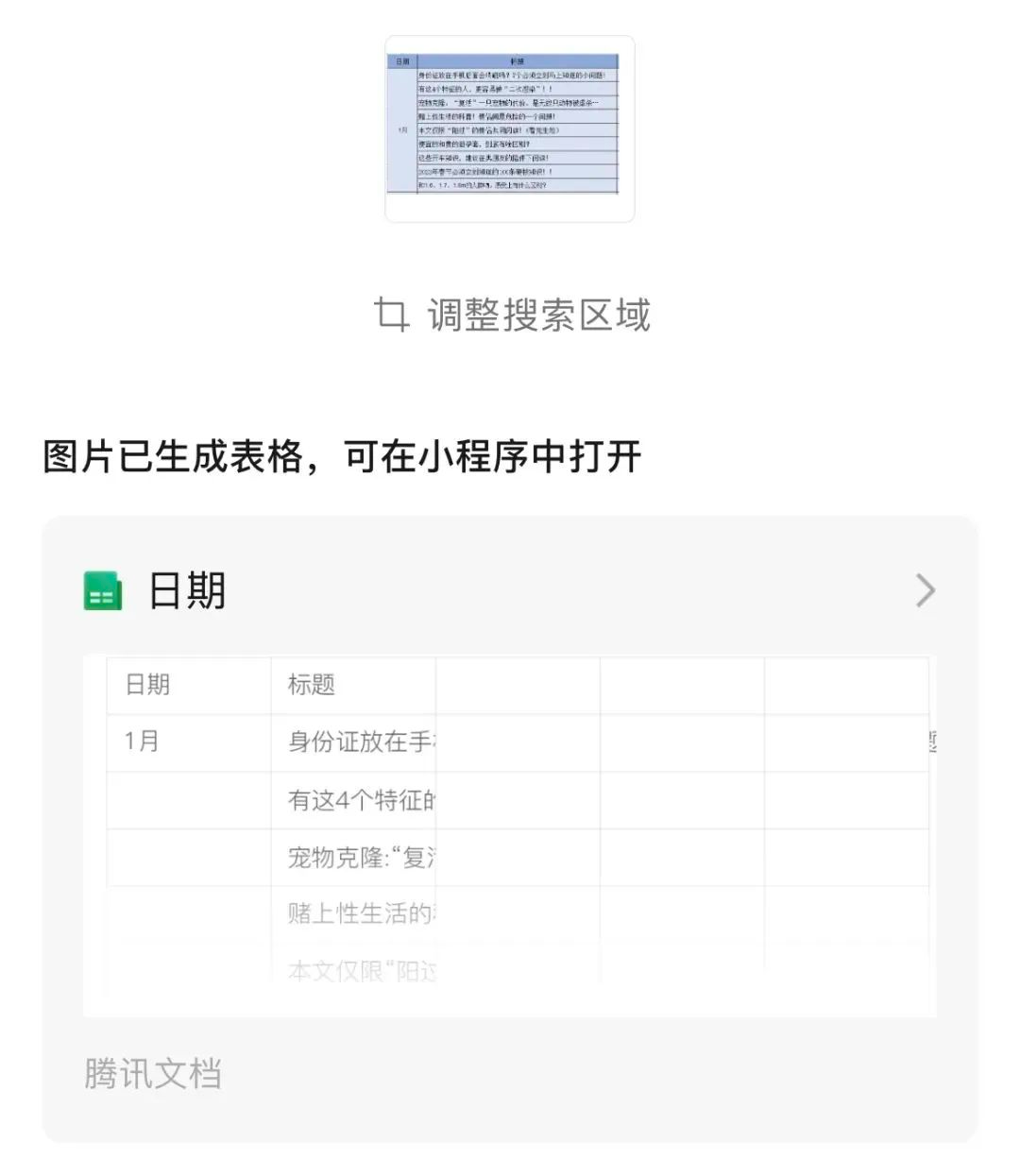 微信可以自动将表格转换成 excel