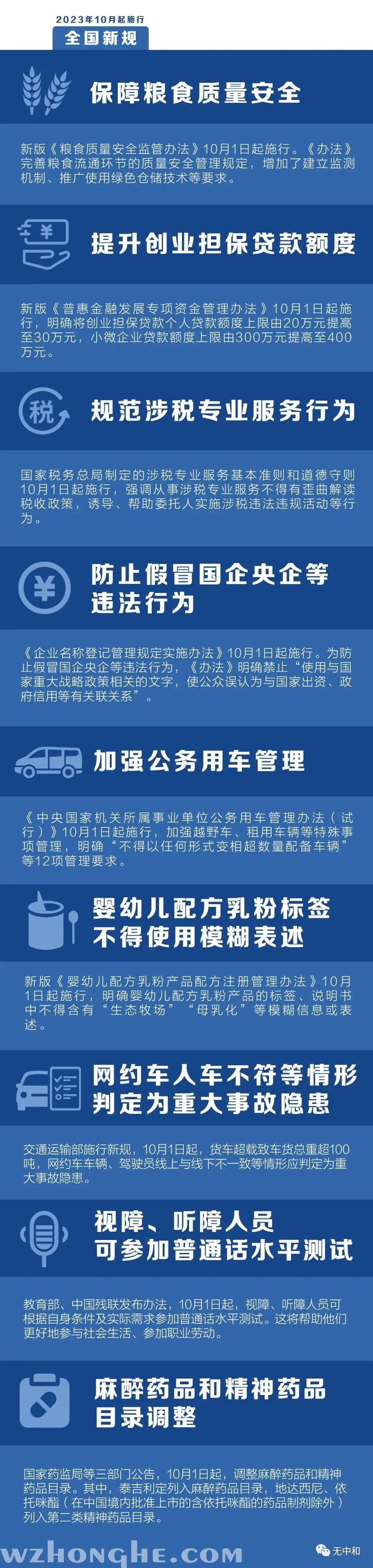 2023年10月新规来了,关乎你我的生活! 2023年10月起施行。 一、全国新规 二、地方新规 —— 回顾上月新规 —— 手机订阅:新闻简报 ↓ 未经允许不得转载:无中和wzhonghe.Com » 2023年10月新规来了,关乎你我的生活!