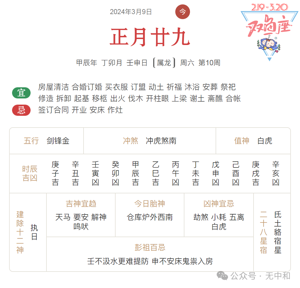 2024年3月9日 星期六 双鱼座 农历正月二十九