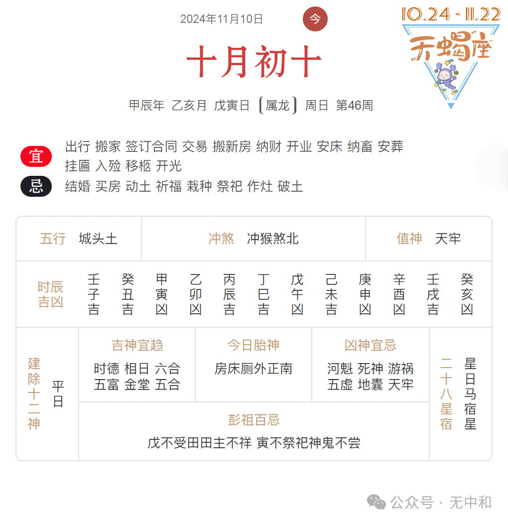 2024年11月10日 星期日 ♏天蝎座 农历十月初十